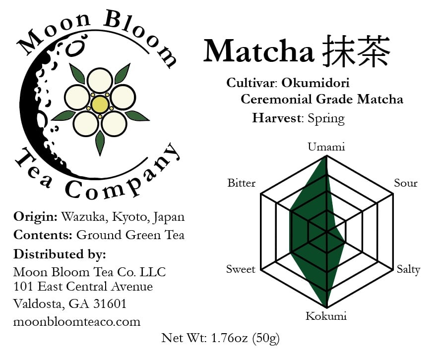 Okumidori Matcha is a dark green, single origin cultivar used for Matcha Ceremonies. Ceremonial grade matcha are not blended, giving a punch of complex flavors. Ceremonial Matcha is usually prepared by whisking small amounts of powder into a shot amount of hot water, which makes the experience akin to having a thick and concentrated "espresso" version of tea. This matcha is a smoother and milder variation than Samidori. Okumidori is still very rich with a complex note of grass, lemon, citrus peel, and savory/umami undertones like nori. The flavor is on the cusp of bitterness when first sipped, yet mellows out with its other refreshing flavors.